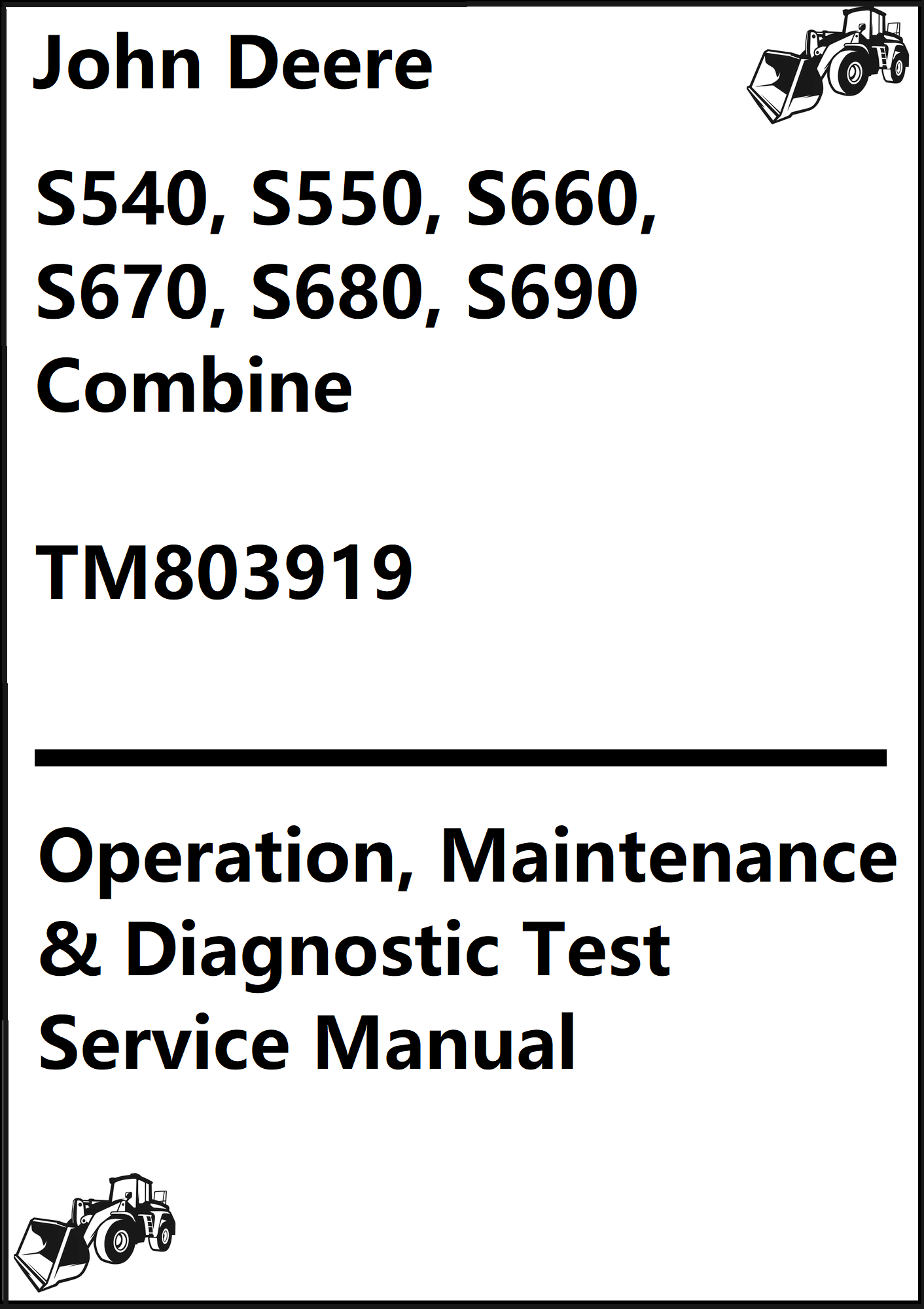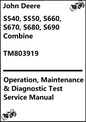 John Deere S540, S550, S660, S670, S680, S690 Combine Operation, Maintenance & Diagnostic Test Service Manual TM803919 - PDF
