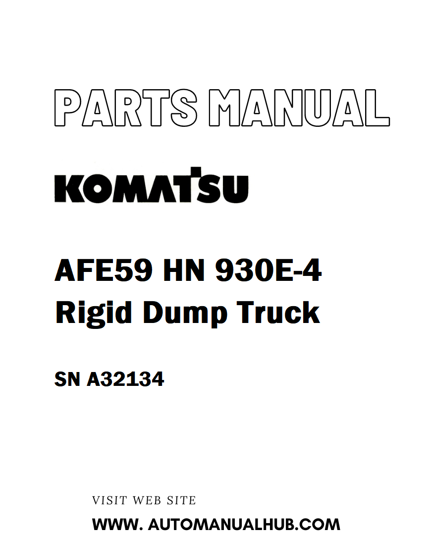 Equip Your Komatsu Afe59 Hn 930e-4 Rigid Dump Truck With The Right Parts. With This Parts Catalog Manual, You Can Easily Identify And Find The Parts You Need, Facilitating Efficient Maintenance And Repair. Stay Productive And Keep Your Vehicle Running With Every Part Accounted For.